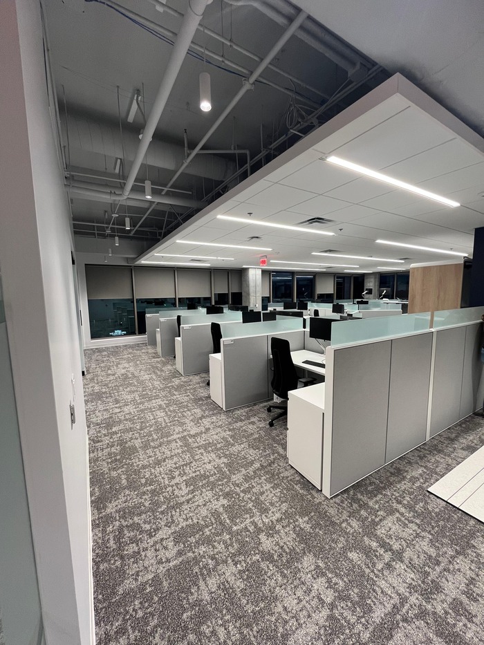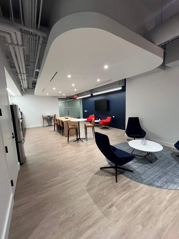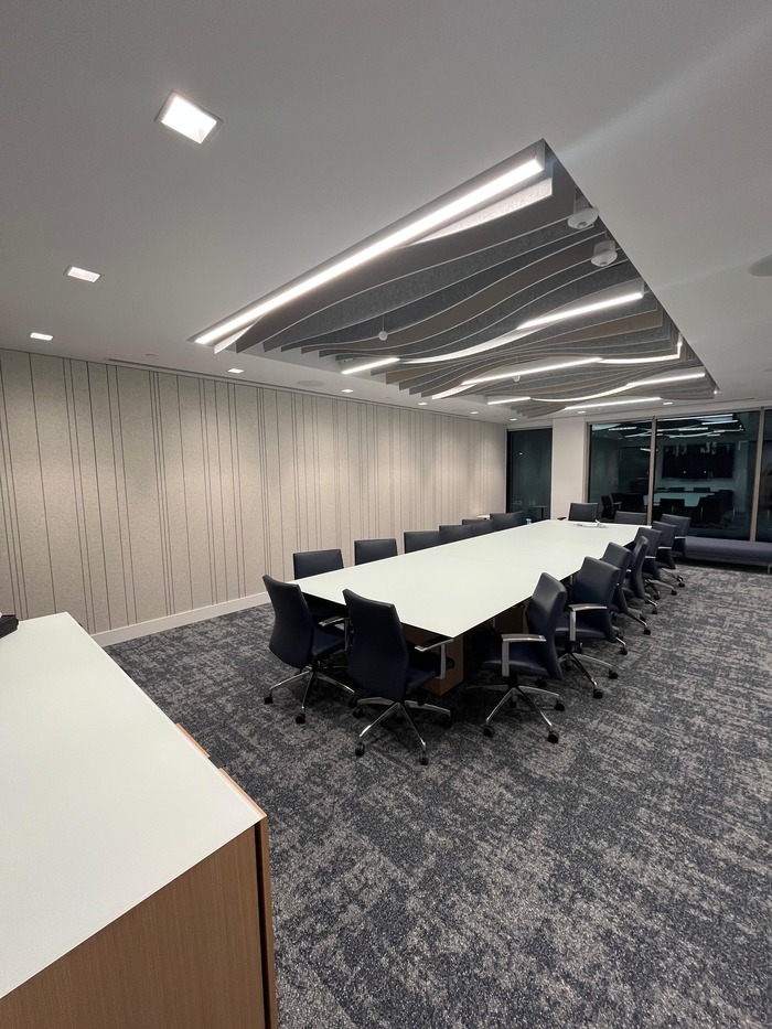 Beyond ceilings, our team provided complete glass door installations, metal framing, and drywall systems—executed with precision to maintain consistency and quality throughout the space. The result: a refined, functional, and visually striking environment for AON Partners.