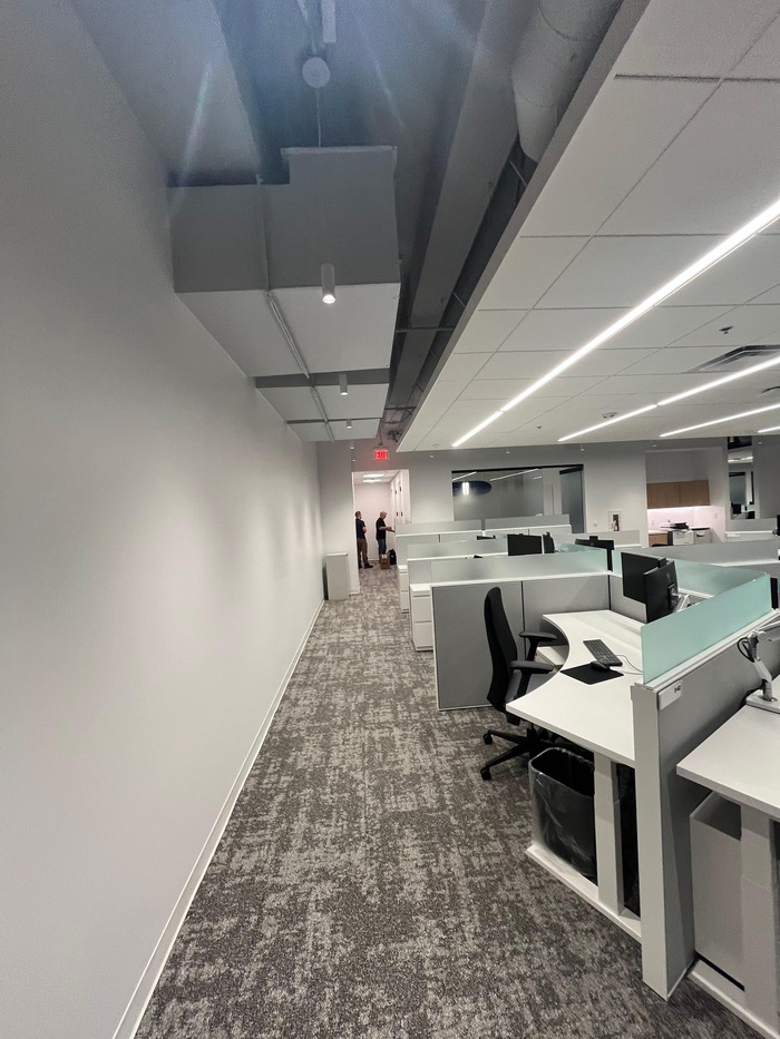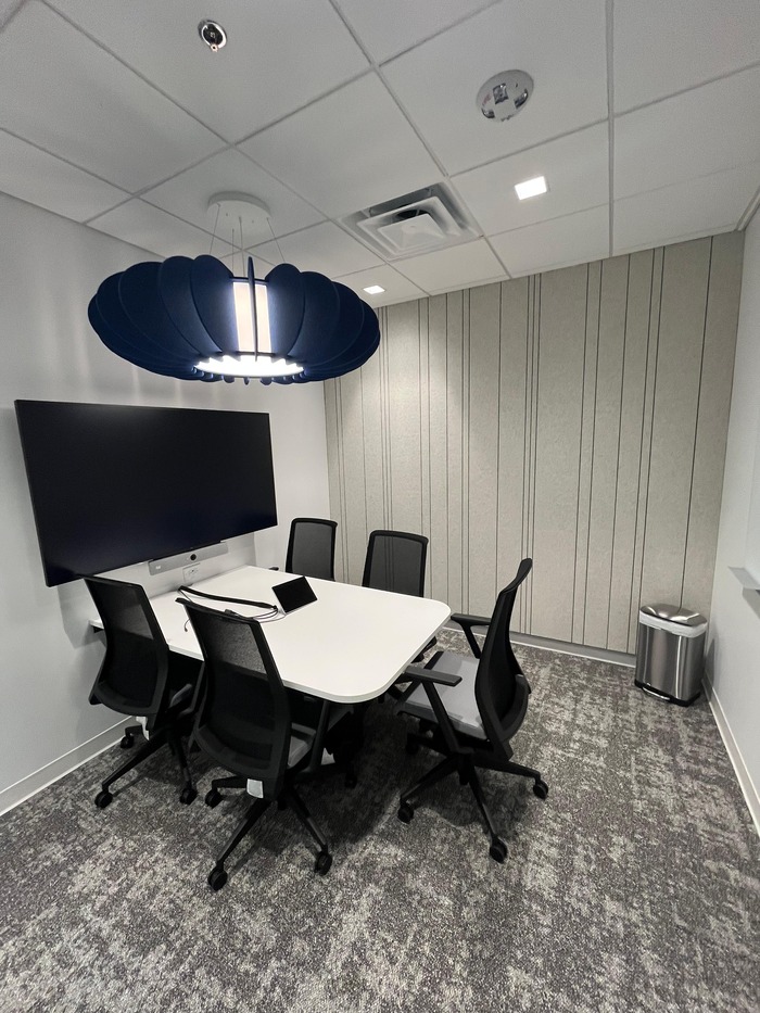 Working closely with the lead architect, we transformed complex design goals into reality. Through our partnership with CSI Creative Ceilings, we delivered a custom acoustical ceiling system that met both aesthetic expectations and stayed well within the owner’s budget.